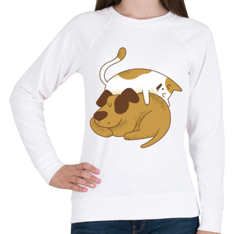 1 kép PRINTFASHION Cica és kutya barátság - Női pulóver - Fehér
