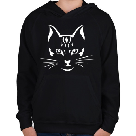 1 kép PRINTFASHION Cica fej - Gyerek kapucnis pulóver - Fekete