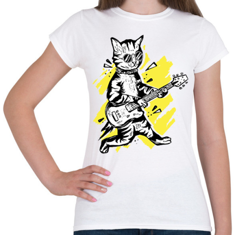 1 kép PRINTFASHION Cica gitárral - Női póló - Fehér
