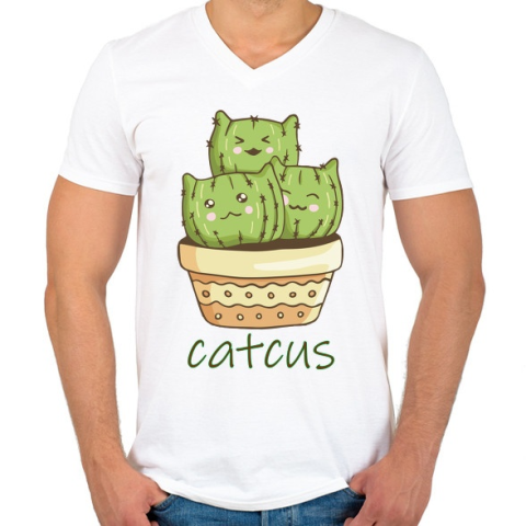 1 kép PRINTFASHION Cica - kaktusz - Catcus - Férfi V-nyakú póló - Fehér
