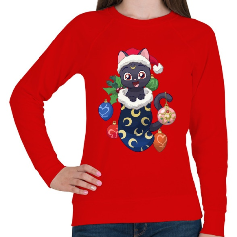 1 kép PRINTFASHION Cica Karácsony - Női pulóver - Piros