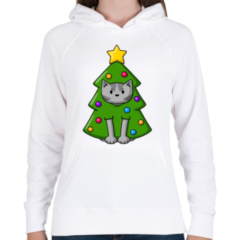 1 kép PRINTFASHION Cica karácsonyfa - Női kapucnis pulóver - Fehér