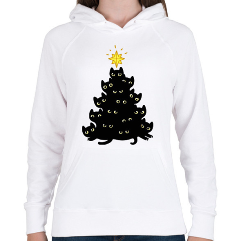 1 kép PRINTFASHION Cica karácsonyfa - Női kapucnis pulóver - Fehér
