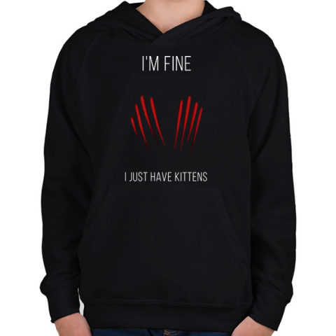 1 kép PRINTFASHION Cica karmolás - Gyerek kapucnis pulóver - Fekete