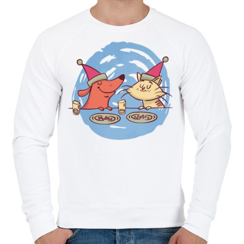 1 kép PRINTFASHION Cica kutya barátok - Férfi pulóver - Fehér