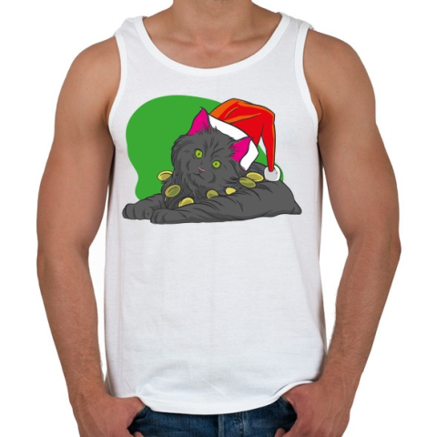 1 kép PRINTFASHION Cica mikulás sapkában - Férfi atléta - Fehér