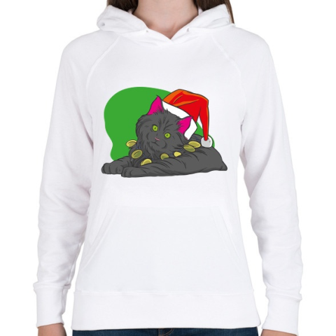 1 kép PRINTFASHION Cica mikulás sapkában - Női kapucnis pulóver - Fehér