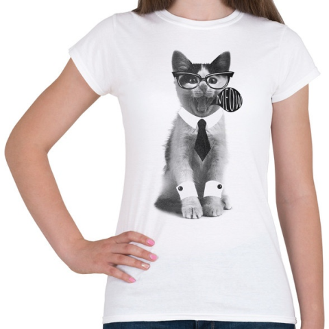 1 kép PRINTFASHION Cica öltönyben - Női póló - Fehér