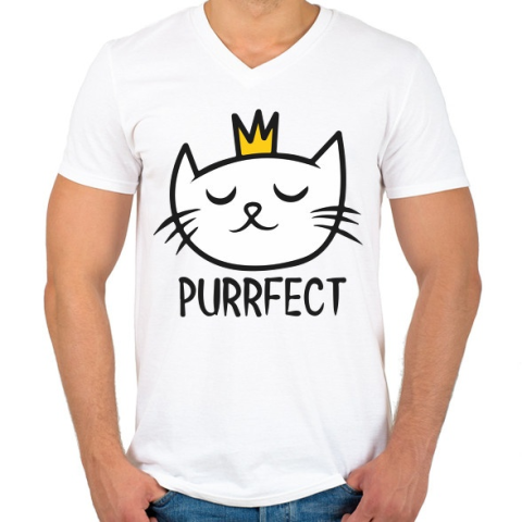 1 kép PRINTFASHION Cica - purrfect - pefekt - Férfi V-nyakú póló - Fehér