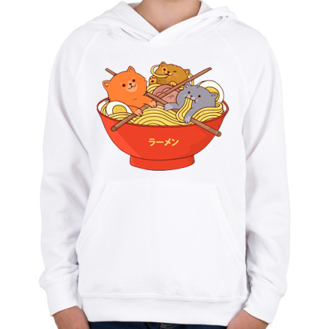 1 kép PRINTFASHION Cica ramen - Gyerek kapucnis pulóver - Fehér