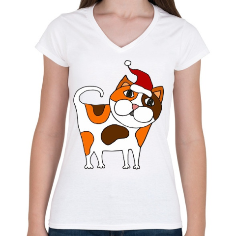 1 kép PRINTFASHION Cica sapkában - Női V-nyakú póló - Fehér