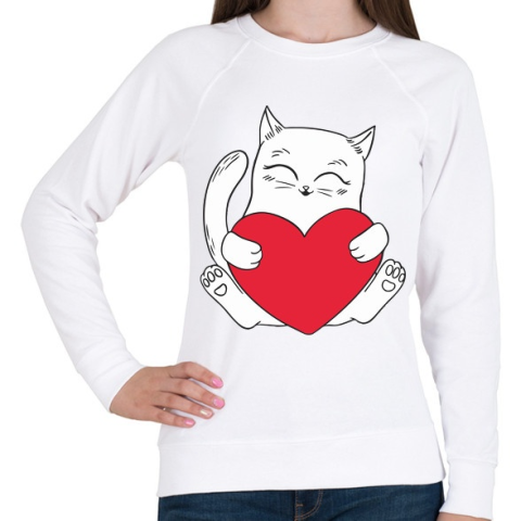 1 kép PRINTFASHION Cica szívvel - Női pulóver - Fehér