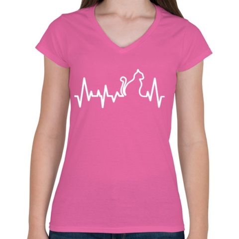 1 kép PRINTFASHION Cica szívverés - Női V-nyakú póló - Rózsaszín
