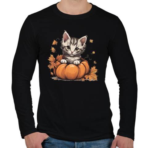 1 kép PRINTFASHION cica tökben - Férfi hosszú ujjú póló - Fekete