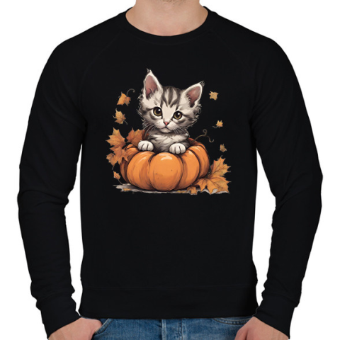 1 kép PRINTFASHION cica tökben - Férfi pulóver - Fekete