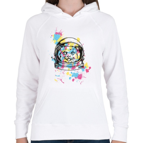 1 kép PRINTFASHION Cica - úrhajós - Női kapucnis pulóver - Fehér