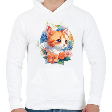 1 kép PRINTFASHION Cica virágokkal - Férfi kapucnis pulóver - Fehér
