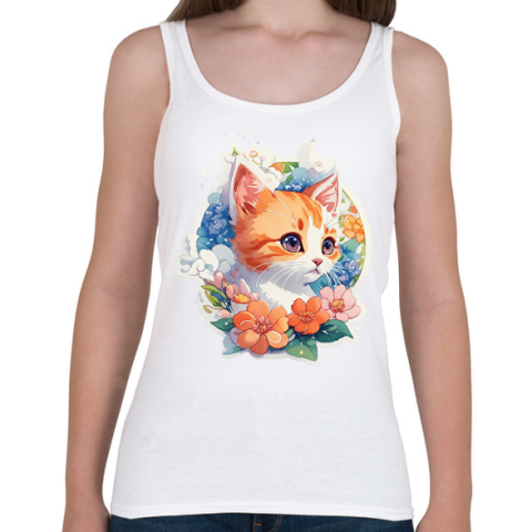 1 kép PRINTFASHION Cica virágokkal - Női atléta - Fehér