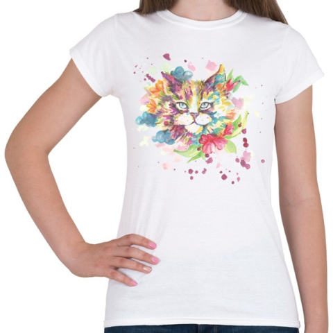 1 kép PRINTFASHION Cica vízfesték - Női póló - Fehér