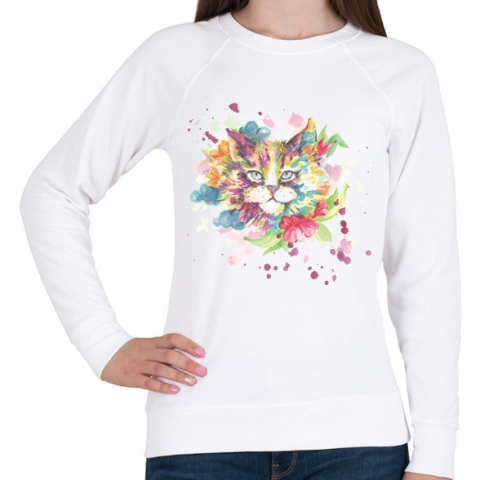1 kép PRINTFASHION Cica vízfesték - Női pulóver - Fehér