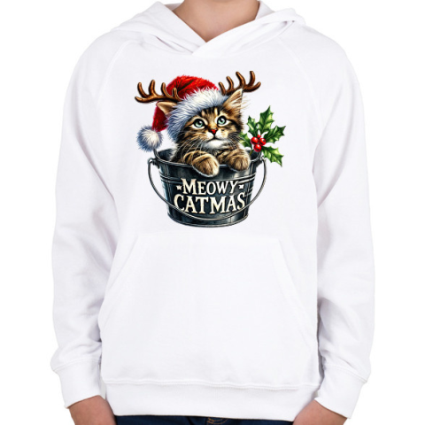 1 kép PRINTFASHION Cica vödörben - Gyerek kapucnis pulóver - Fehér