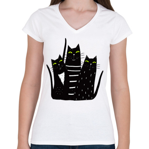 1 kép PRINTFASHION Cicák - Női V-nyakú póló - Fehér