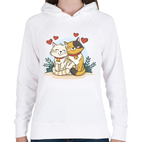 1 kép PRINTFASHION Cicák párban - Női kapucnis pulóver - Fehér