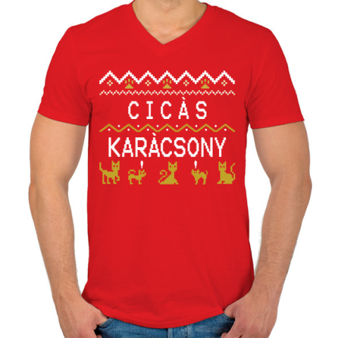 1 kép PRINTFASHION CICÁS KARÁCSONY - Férfi V-nyakú póló - Piros