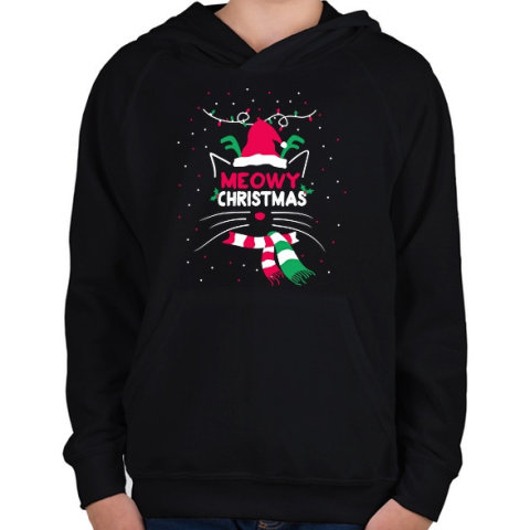 1 kép PRINTFASHION Cicás karácsony - Gyerek kapucnis pulóver - Fekete