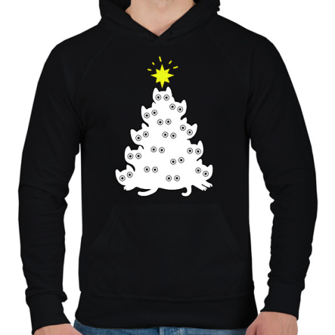 1 kép PRINTFASHION Cicás Karácsonyfa - Férfi kapucnis pulóver - Fekete
