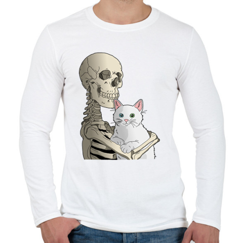 1 kép PRINTFASHION Cicás leszek amíg élek (fehér cicával) - Férfi hosszú ujjú póló - Fehér