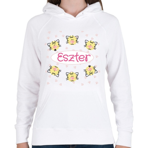 1 kép PRINTFASHION Cicás minta névvel - Női kapucnis pulóver - Fehér