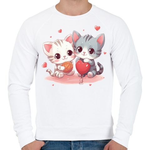 1 kép PRINTFASHION Cicás szív - Férfi pulóver - Fehér
