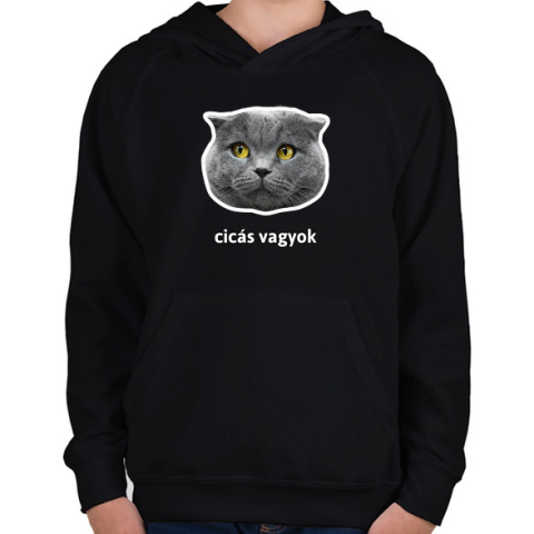 1 kép PRINTFASHION cicás vagyok - Gyerek kapucnis pulóver - Fekete