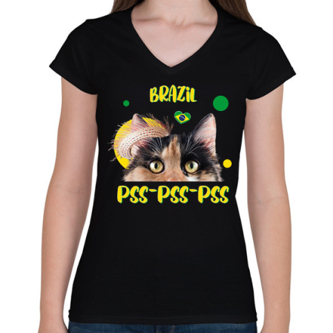 1 kép PRINTFASHION Cicc-cicc - Brazil - Női V-nyakú póló - Fekete