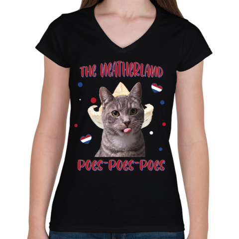1 kép PRINTFASHION Cicc-cicc - The Neatherland - Női V-nyakú póló - Fekete