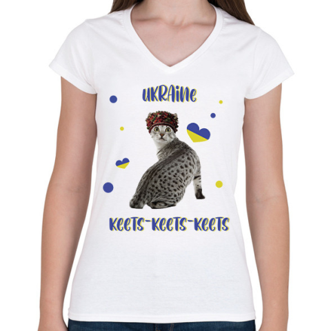 1 kép PRINTFASHION Cicc-cicc - Ukraine - Női V-nyakú póló - Fehér