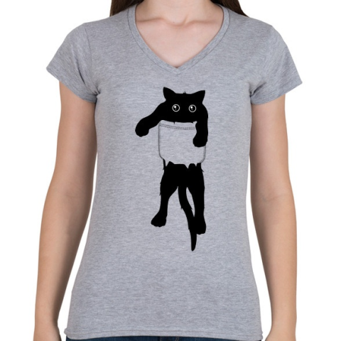 1 kép PRINTFASHION Cicus zsebben - Női V-nyakú póló - Sport szürke