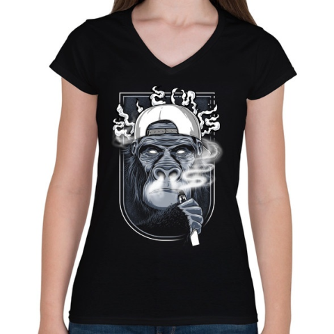 1 kép PRINTFASHION Cigis majom - Női V-nyakú póló - Fekete
