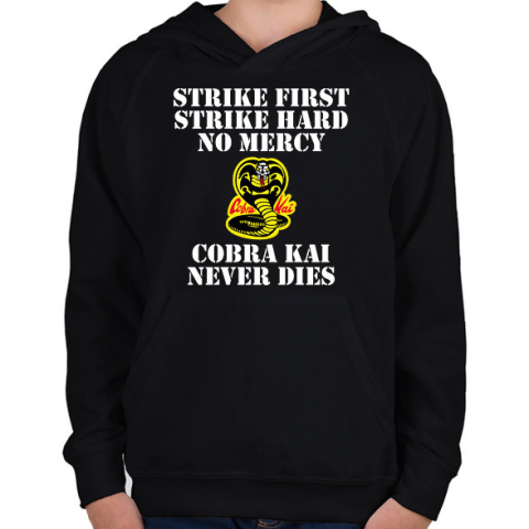 1 kép PRINTFASHION Cobra Kai never dies - Gyerek kapucnis pulóver - Fekete