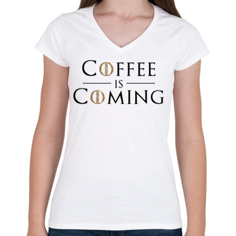1 kép PRINTFASHION Coffee is Coming - Női V-nyakú póló - Fehér