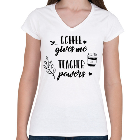 1 kép PRINTFASHION Coffee- Teacher - Női V-nyakú póló - Fehér