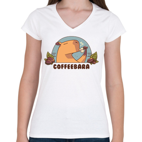1 kép PRINTFASHION Coffeebara - Női V-nyakú póló - Fehér