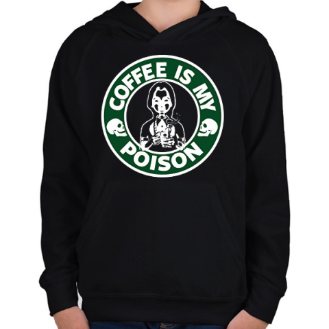 1 kép PRINTFASHION coffeismypoison - Gyerek kapucnis pulóver - Fekete