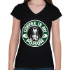 1 kép PRINTFASHION coffeismypoison - Női V-nyakú póló - Fekete