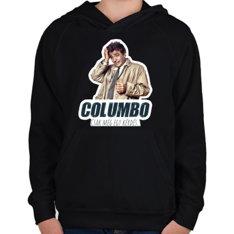 1 kép PRINTFASHION Columbo - Csak még egy kérdés - Gyerek kapucnis pulóver - Fekete