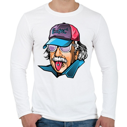 1 kép PRINTFASHION Cool Einstein - Férfi hosszú ujjú póló - Fehér