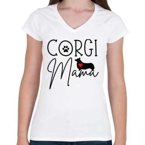 1 kép PRINTFASHION Corgi anya - Női V-nyakú póló - Fehér
