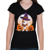 1 kép PRINTFASHION Corgi halloween - Női V-nyakú póló - Fekete