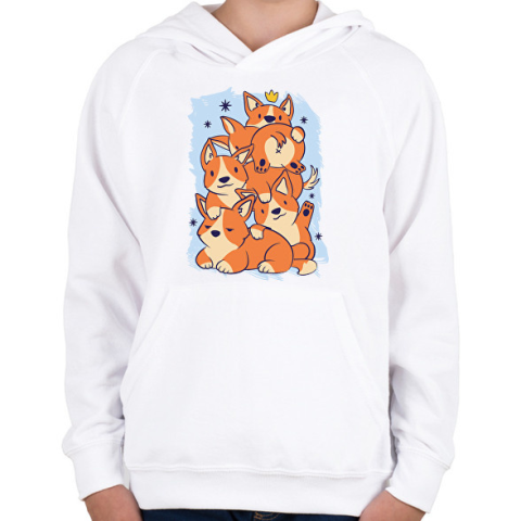 1 kép PRINTFASHION Corgi kupac - Gyerek kapucnis pulóver - Fehér